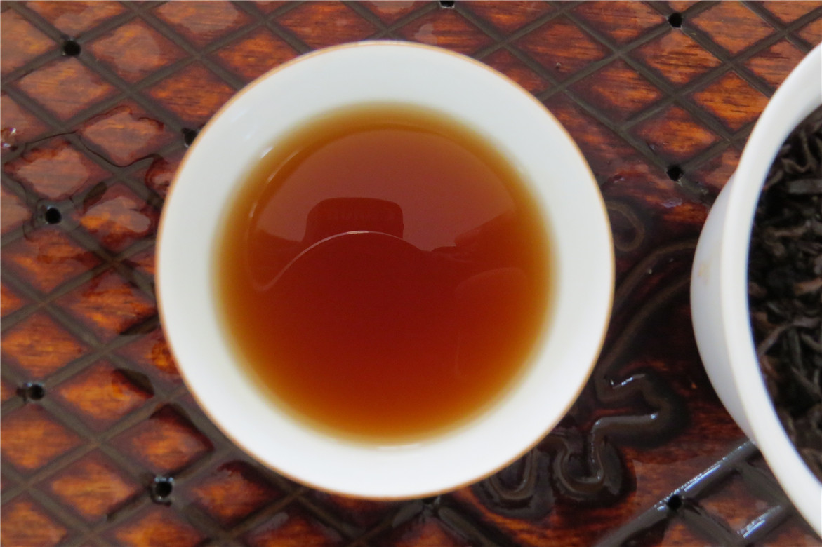 2、熟茶的品饮,熟茶的品饮是很简单的,普洱生茶的制作体现在选料用料上,但是熟茶的制作却体现在发酵工艺和拼配工艺上,这个从大益的产品中已经证明。普洱熟茶的品饮简单的可以用三个词概况:干净,纯正,好喝!干净是指茶汤红浓明亮,干茶无非茶的物质,茶汤沉淀物少等。纯正是指香气有舒服的陈香,无杂味,茶汤入口甜而顺滑,不苦不涩不燥。好喝就是喝了口不干,舌不燥,喉不锁,不酸,不麻,不惺,不怪!喝了还想再来一杯,最好一杯接一杯!熟茶品饮最后的工作是查看叶底,叶底的活性是很关键的,如前段时间朋友喝到某大师的熟茶,说是找到了老生茶的感觉,让我亲自整点给他,于是我找了茶样亲自整上一泡,喝着感觉确实不错,然又觉得似乎有点飘的感觉,坚持多喝几泡以后发现胃稍有不适,看叶底金黄均匀,揉捻大吃一惊--叶底基本没活性,轻微一捏稀巴烂。原因是此茶采用轻发酵(缩短正常发酵时间),口感让给人甜味很重,甜香突出的假象,但是叶底中还是暴露出来,想必大家也知道不生不熟的东西最好还是别喝!喝熟茶记得看叶底!